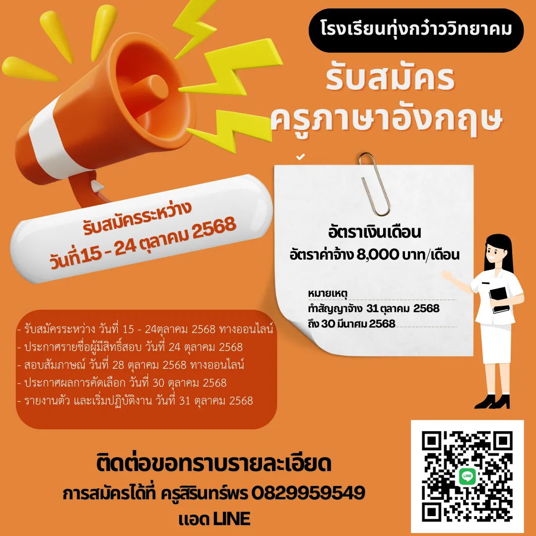 รับสมัครเป็นลูกจ้างชั่วคราวครูผู้สอนวิชาภาษาอังกฤษ